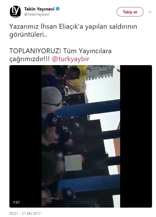 İhsan eliaçık’ın yayın evi “Tekin Yayınevi” olaylar üzerine yaşanan olayların videosunu twitter hesabı üzerinden yayınlayarak “Yazarımız İhsan Eliaçık’a yapılan saldırının görüntüleri.. TOPLANIYORUZ! Tüm yayıncılara çağrımızdır” şeklinde twit atarak Kayseri kitap fuarına katılan diğer yayın evlerinide fuardan çekilmeye davet etti!